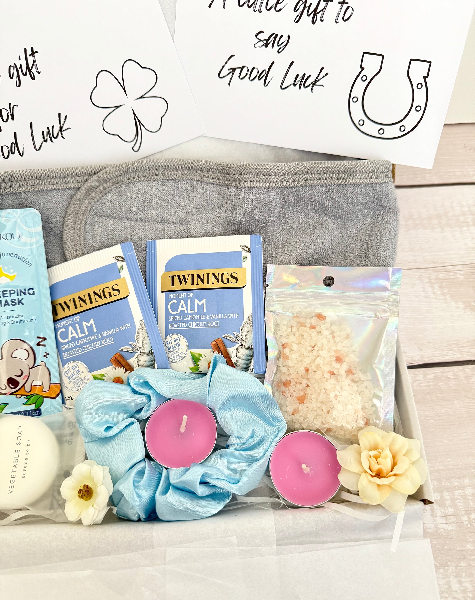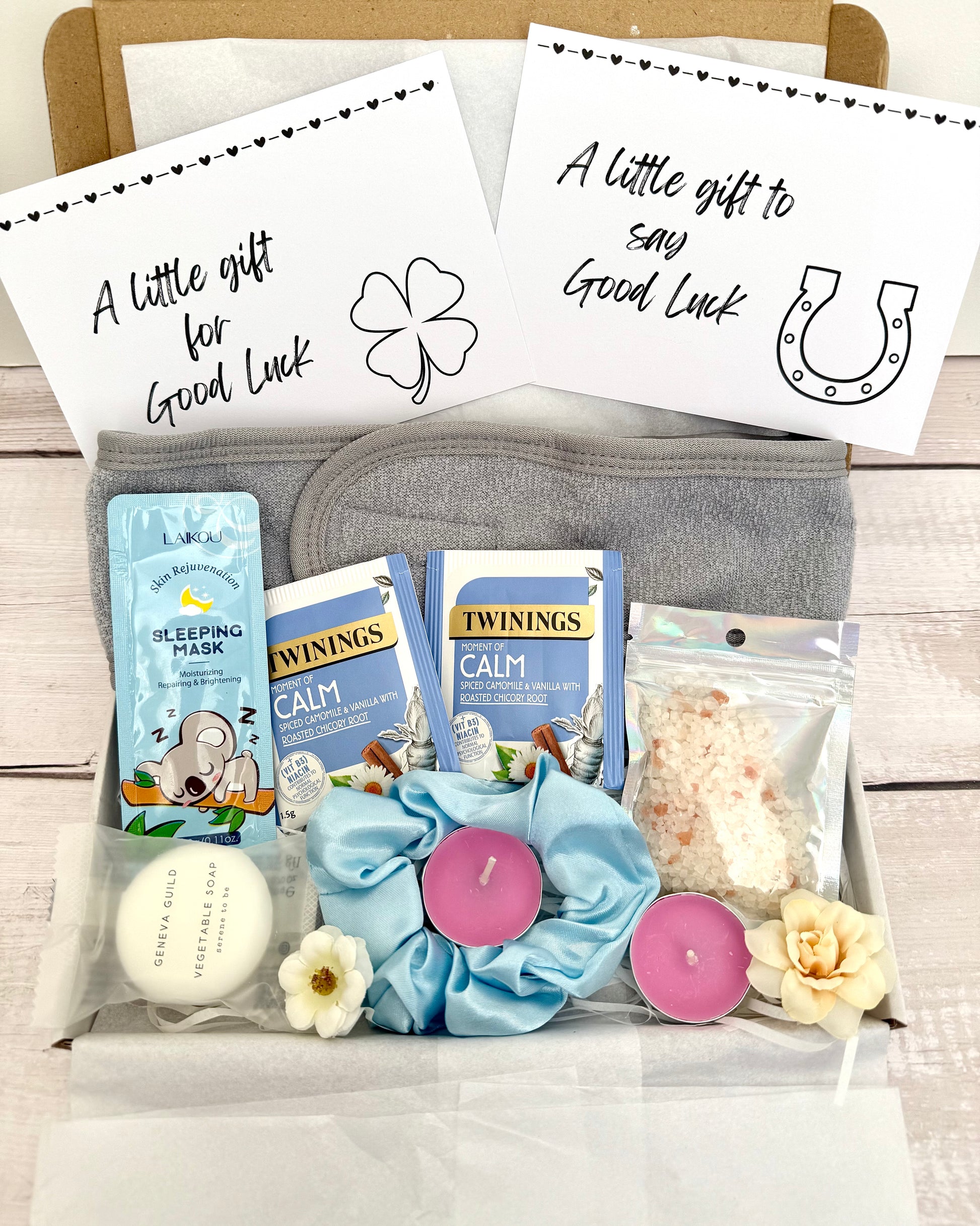 Send a little calm and confidence their way with this gentle pamper box, perfect for wishing someone luck before a big day. Whether it's an exam, interview, or a new chapter, this soothing self-care package is designed to ease nerves and encourage a moment of pause.